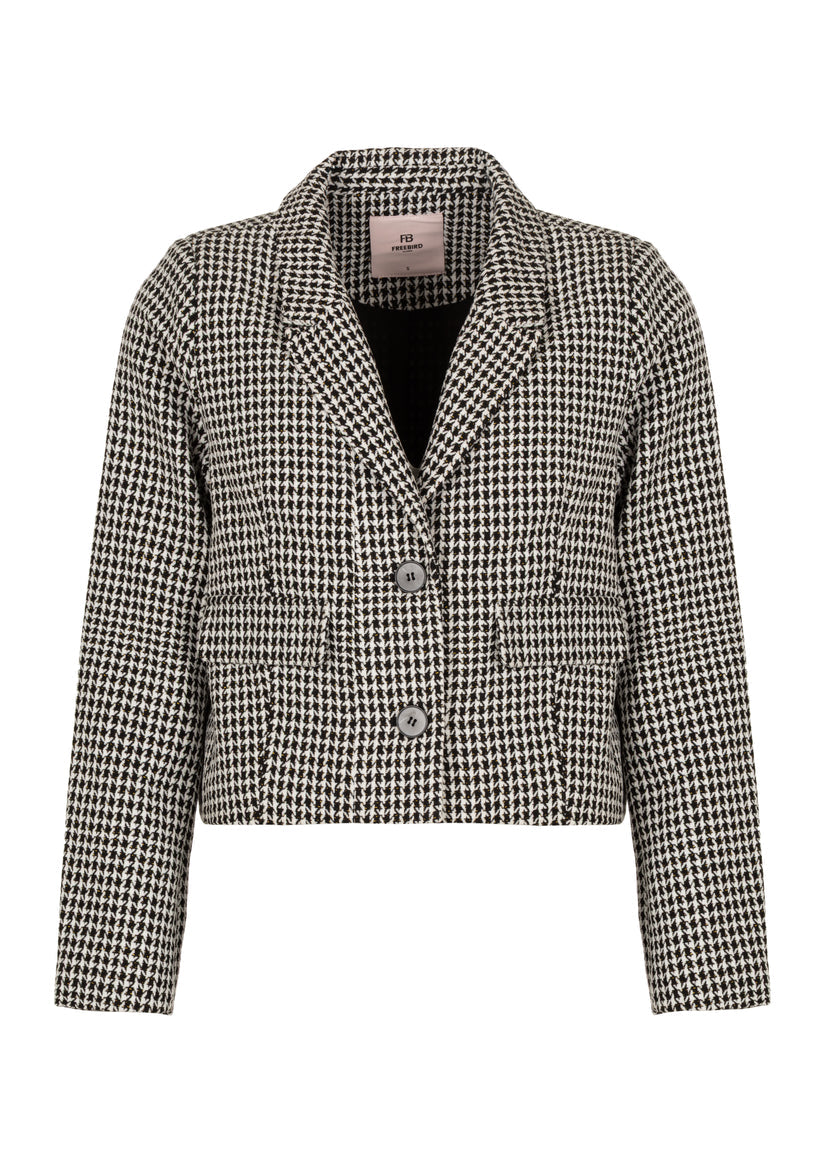 Voeg een klassieke twist toe aan je outfit met deze cropped blazer in pied-de-poule dessin. Gemaakt van een zachte jacquardkwaliteit, combineert dit item moeiteloos tijdloze elegantie met moderne flair. De schoudervullingen zorgen voor een krachtige, gestructureerde look, terwijl de korte lengte perfect balanceert met high-waisted broeken of rokken. De blazer is afgewerkt met een klassieke reverskraag, lange mouwen en een stijlvolle knoopsluiting.