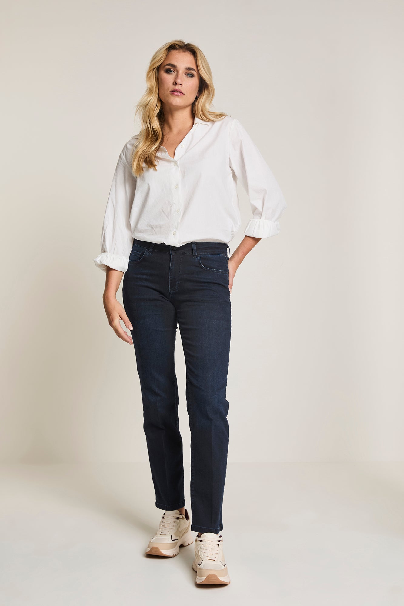 De perfecte combinatie van stijl en comfort. Deze jeans heeft een flatterende slim fit met een comfortabele taille en is ontworpen voor dagelijks gebruik. Dankzij de lichte stretch biedt deze broek optimale bewegingsvrijheid zonder in te leveren op pasvorm.