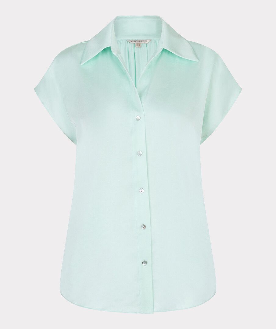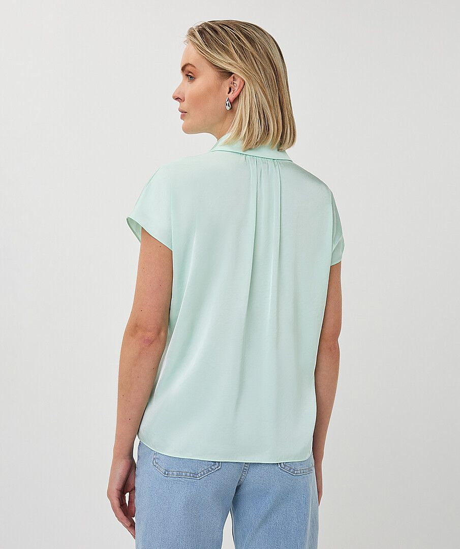 Satijnen muntkleurige bloes met kapmouw