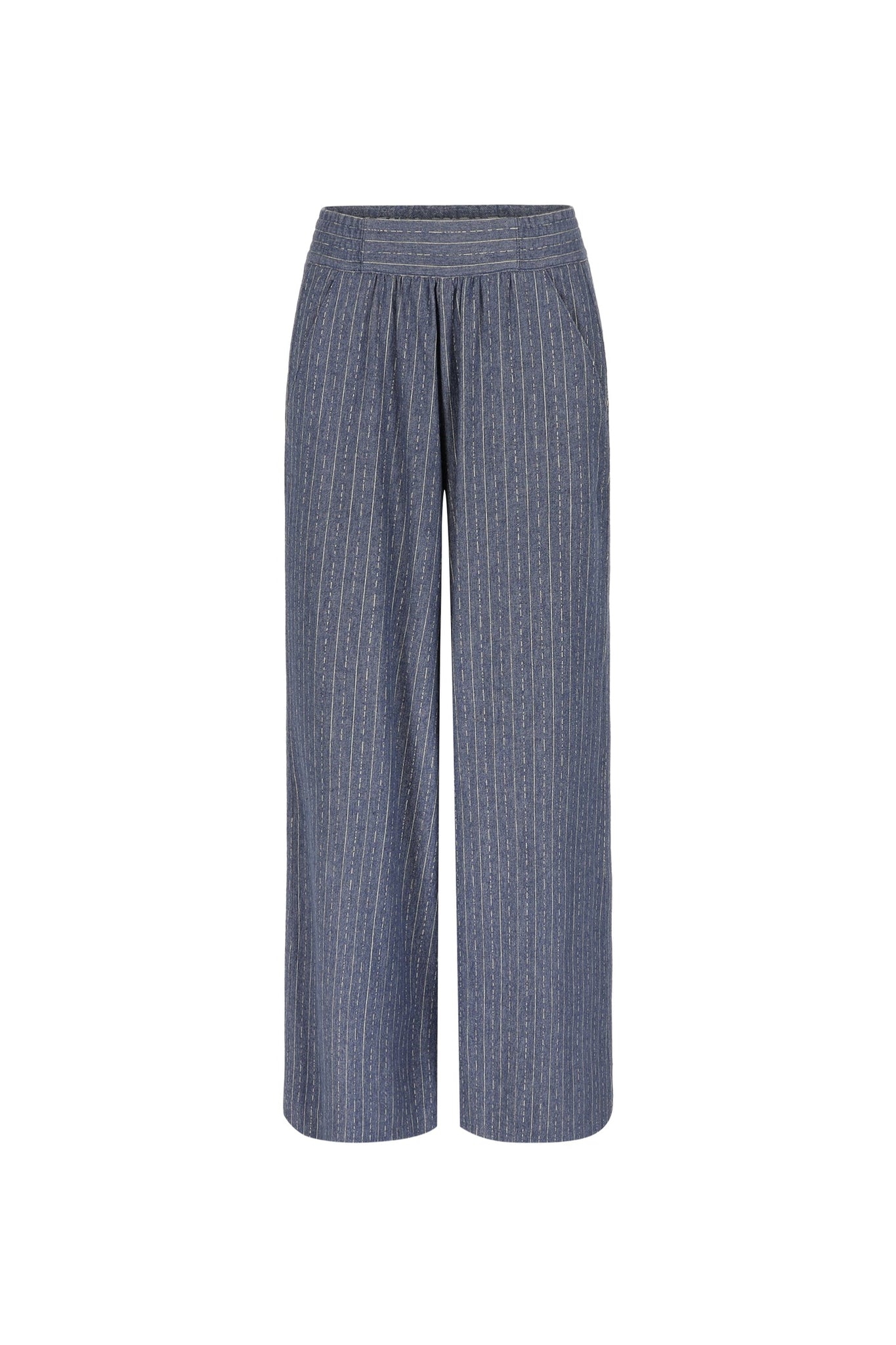 De Honolulu pants is dé broek voor wie houdt van comfort zonder in te boeten op stijl. Deze wide leg topper is uitgevoerd in dezelfde prachtige denim-look stof als de Havana blouse, wat zorgt voor een vloeiende en luxueuze uitstraling. De verticale streep verlengt je benen optisch, terwijl de relaxte pasvorm ervoor zorgt dat je de hele dag moeiteloos in stijl doorbrengt. Dit is effortless chic op zijn best.