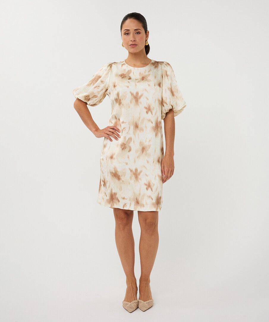 Chique jurk met ballonmouwen in onze Scarlet Flowerpower print. De jurk heeft een ritssluiting aan de achterzijde en is gemaakt van 100% viscose.
