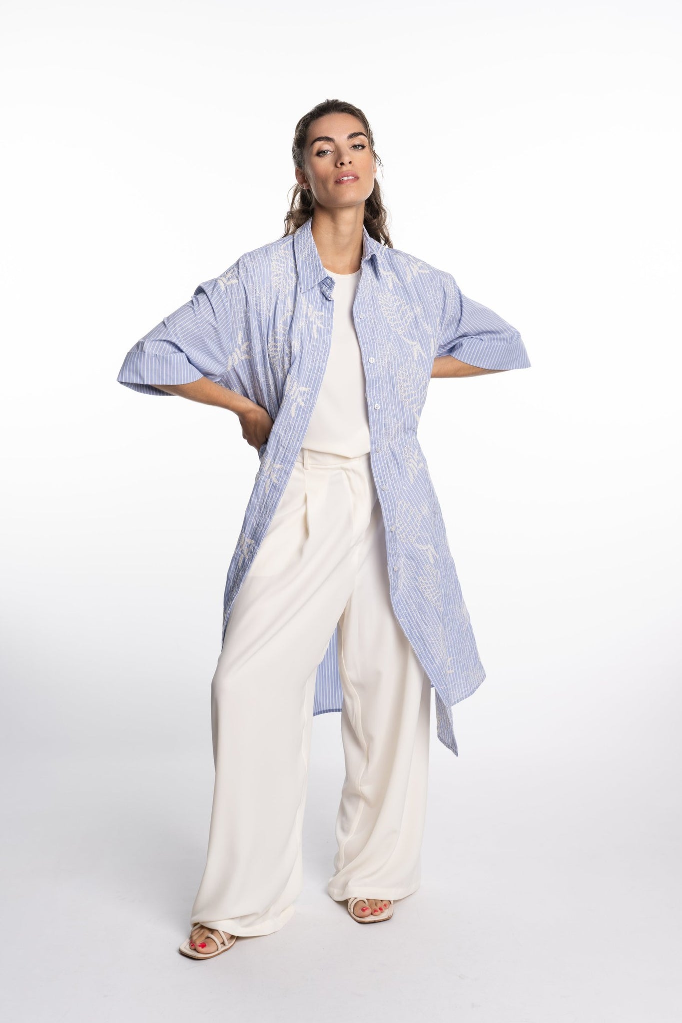 Prachtig lichtblauw katoen kleed/tuniek met wit borduursel. Kan je als kleed of tuniek dragen.