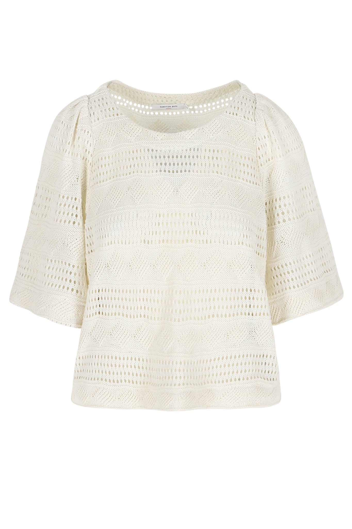 Maak kennis met de ultieme bohemian-chic essential. Het Jaipur T-shirt tilt de witte tee naar een hoger niveau met zijn prachtige, verfijnde ajourpatronen. De verschillende gebreide structuren creëren een luchtig en romantisch lijnenspel dat direct luxe uitstraalt. Met zijn elegante ronde hals en volumineuze half-lange mouwen is dit shirt de perfecte balans tussen klassiek en modern. Een tijdloos stuk in de kleur Dew dat elke outfit een zachte, geraffineerde touch geeft.67%PES 27%CO 6%VI