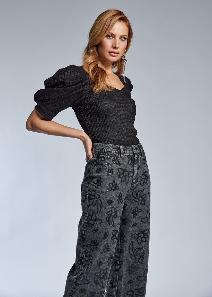 Deze top is gemaakt van een luxe jersey kwaliteit met structuur en subtiele glans, wat zorgt voor een chique en verfijnde look. Dankzij de stretchstof sluit de top mooi aan op het lichaam en biedt hij optimaal draagcomfort. De vrouwelijke neklijn en pofmouwen geven het ontwerp een stijlvolle, romantische touch. Perfect te combineren met een pantalon of rok voor een modieuze, feestelijke outfit.