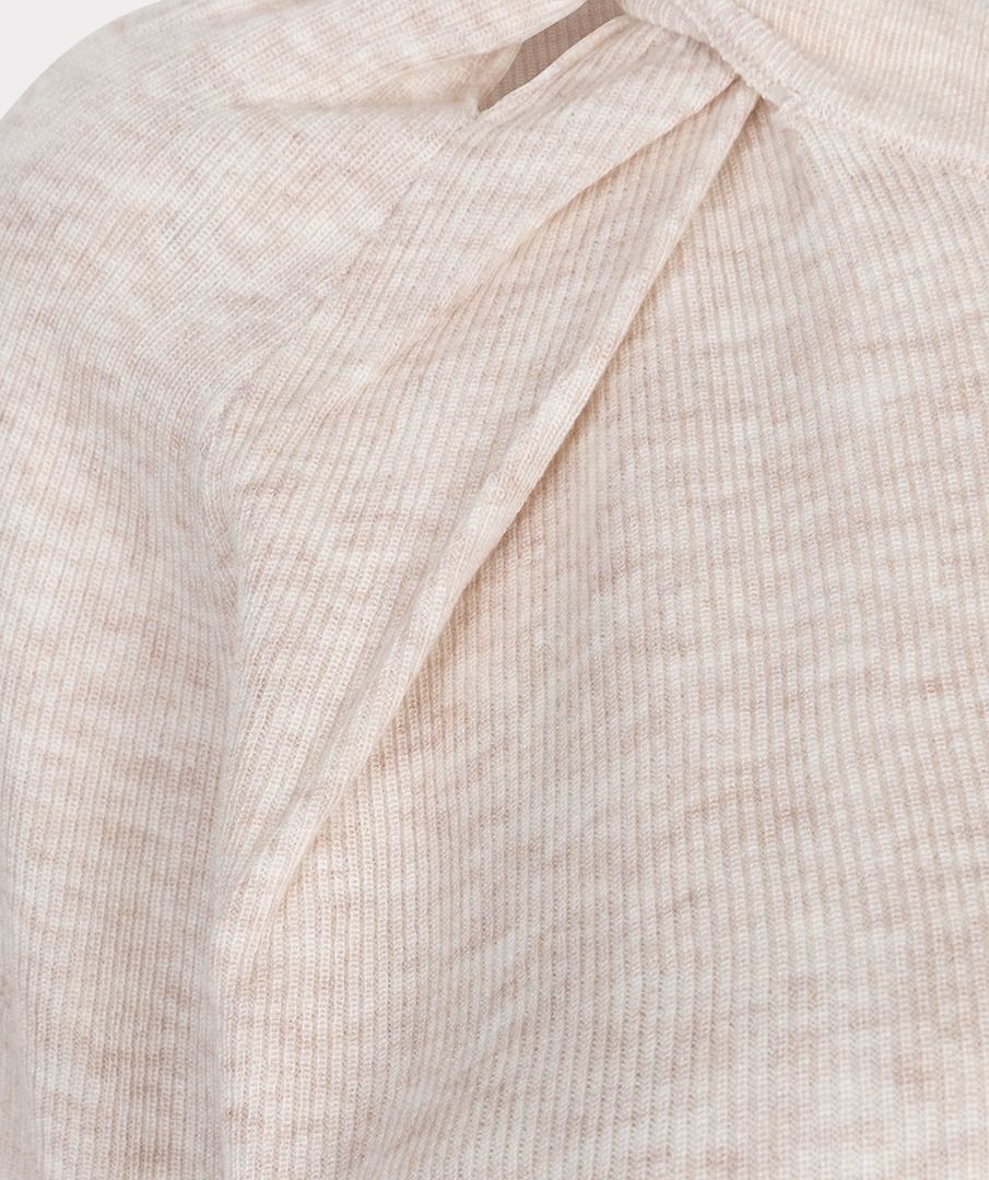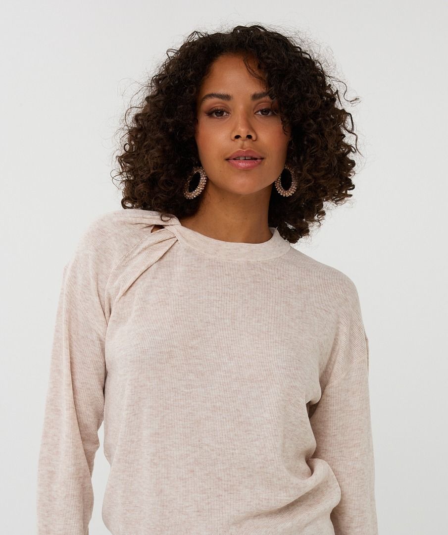 A-symetrische fijnbrei top met lange mouwen en mooi detail in de hals. De top is gemaakt van 32% wol, 48% polyester en 20% acryl. Model is 1.73m en draagt maat S.