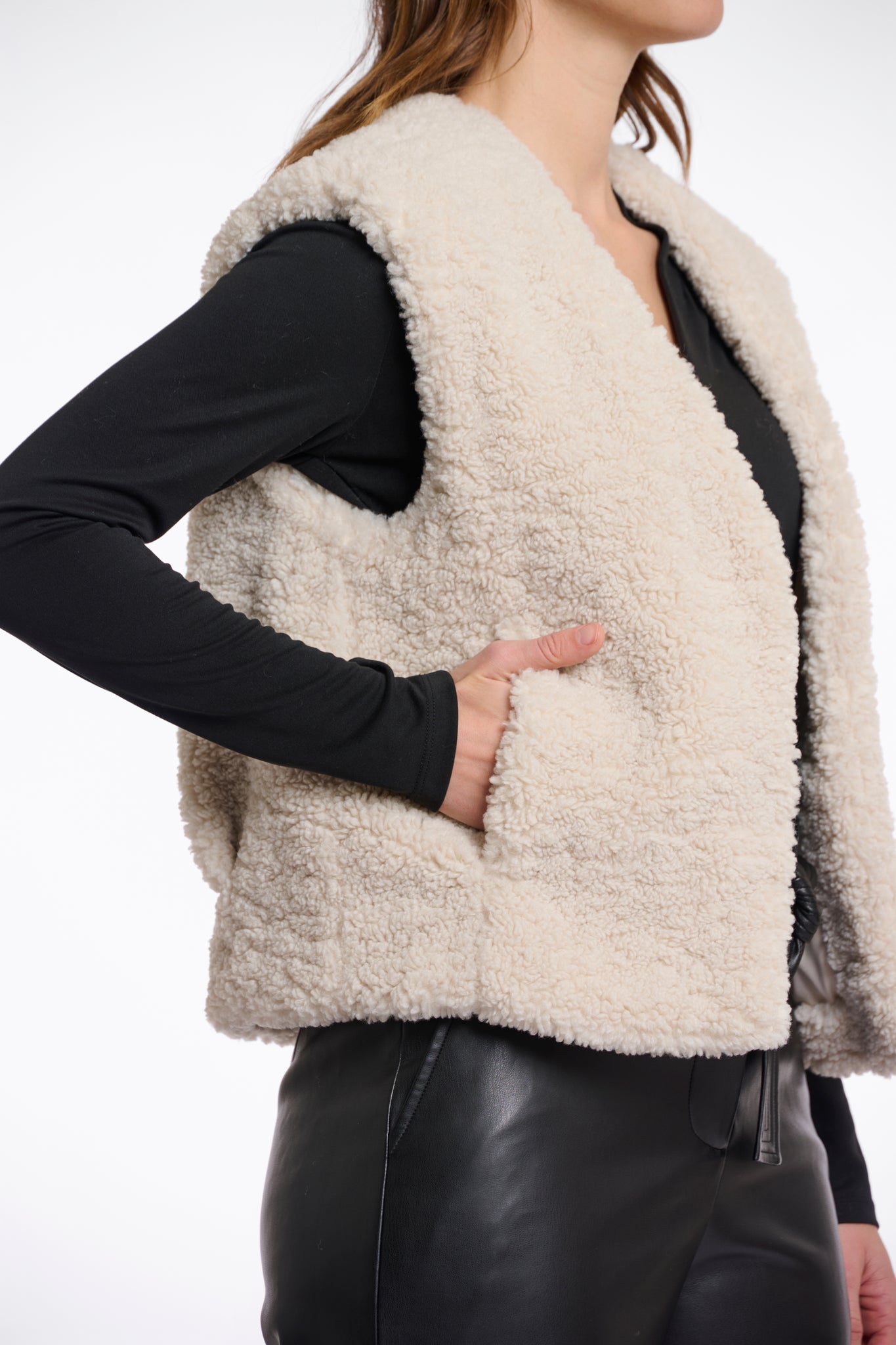 Hul jezelf in luxe en zachtheid met deze teddy bodywarmer.